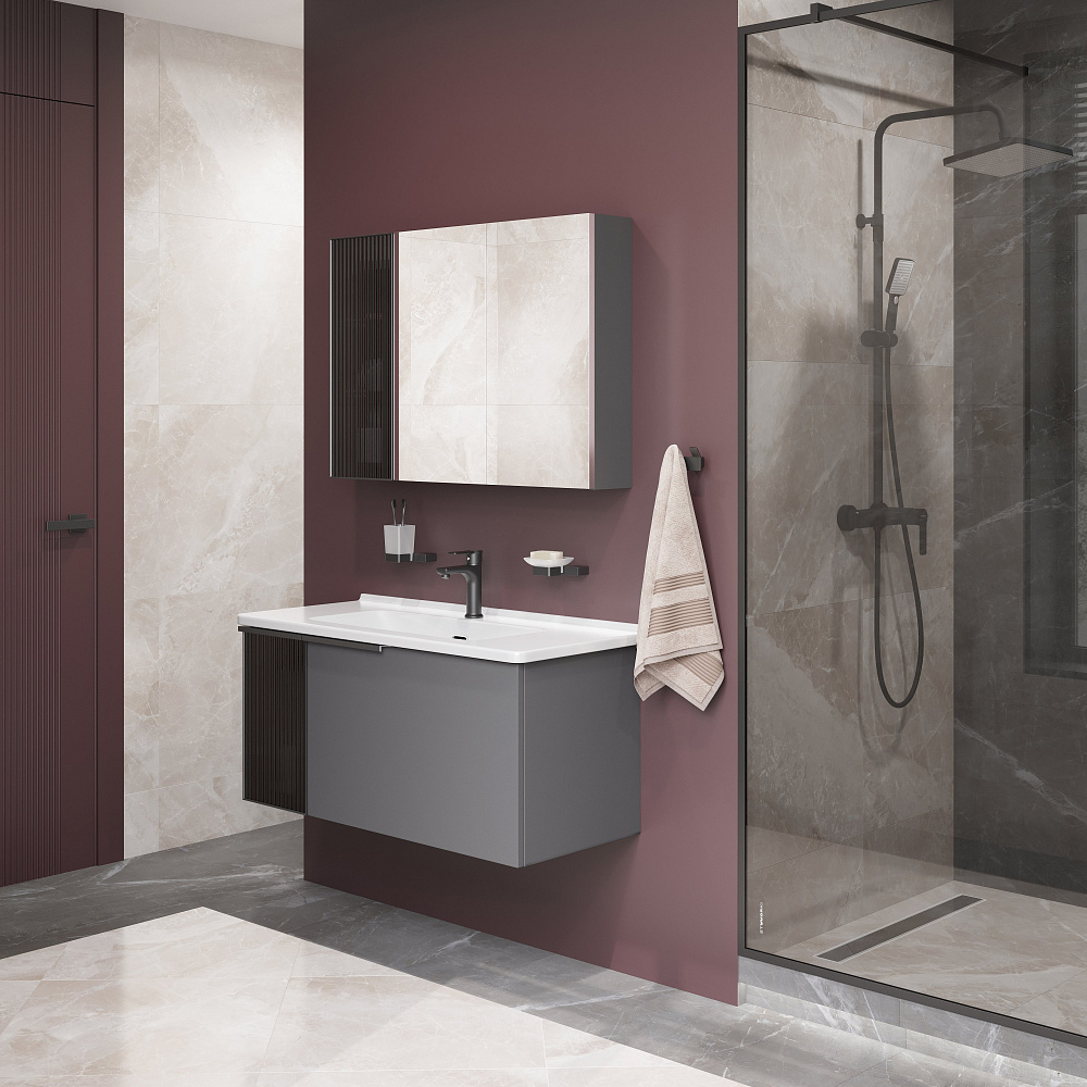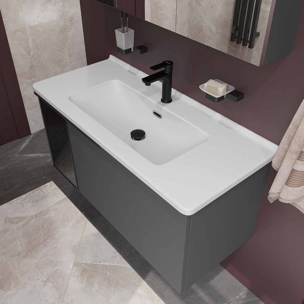 Тумба с раковиной STWORKI Готланд 100 антрацит матовый