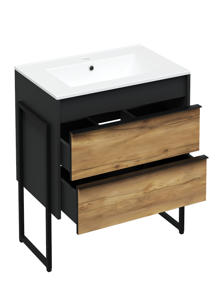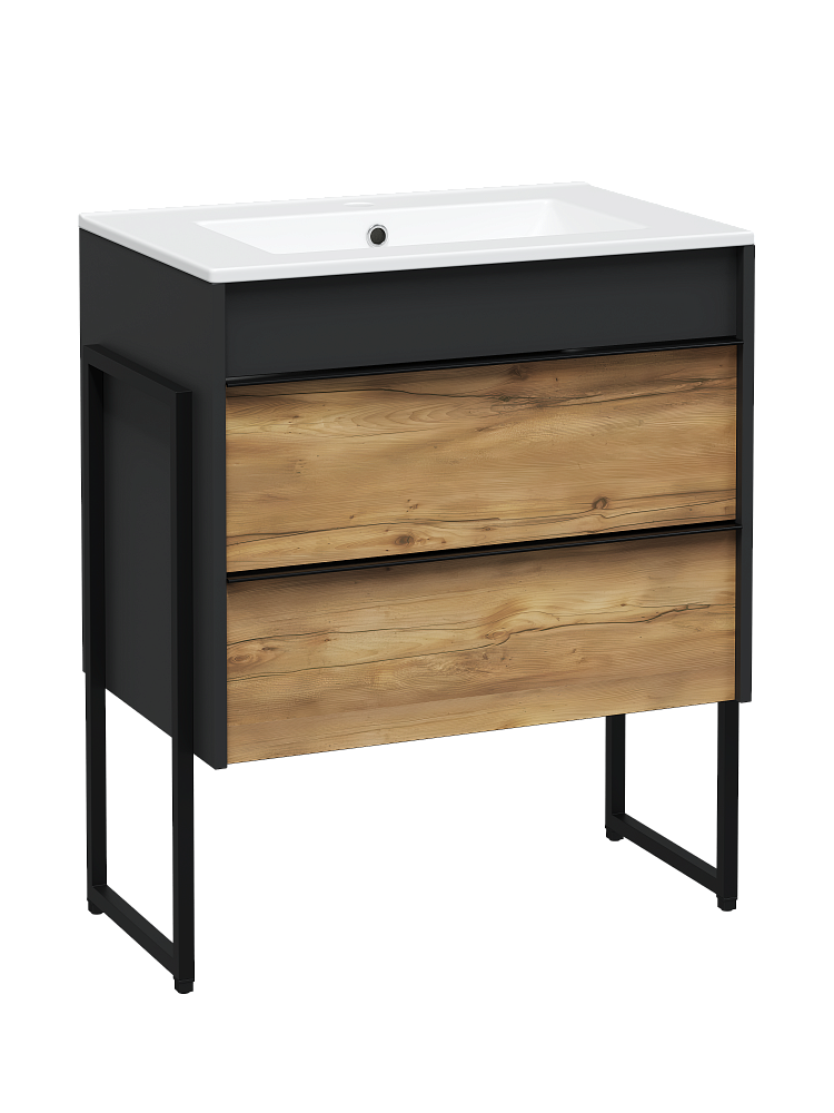 Тумба с раковиной STWORKI Гриндстед 70 с опорами, дуб таксония, антрацит матовый, раковина DIWO Мурманск A71