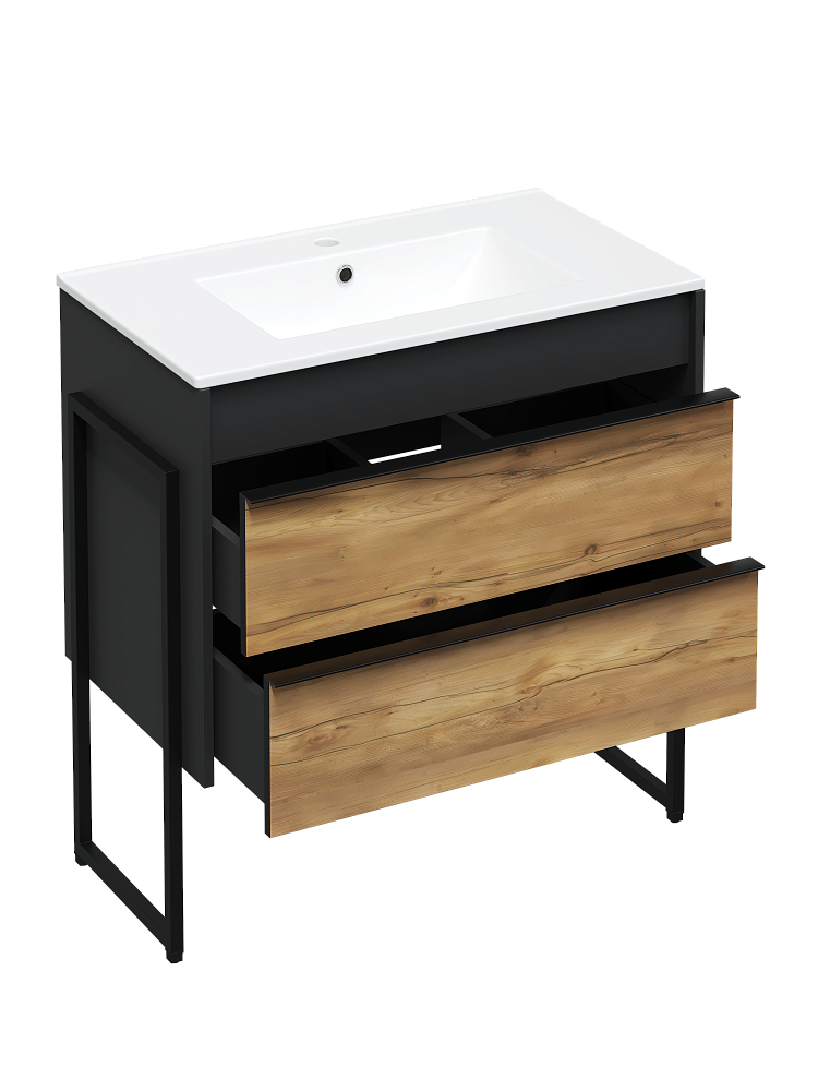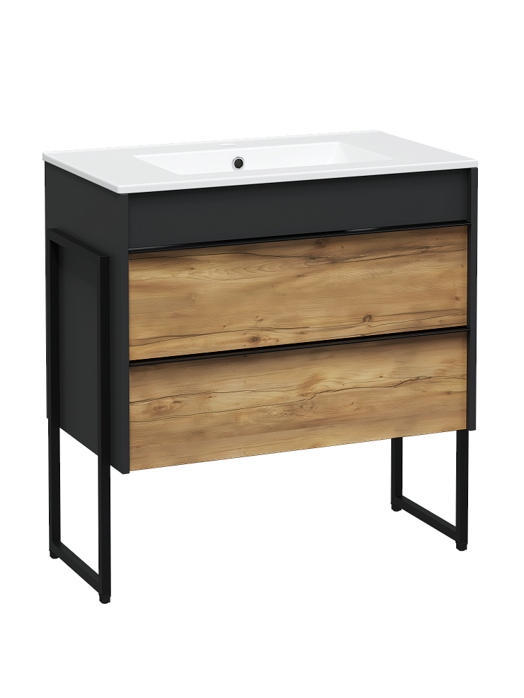 Тумба с раковиной STWORKI Гриндстед 80 с опорами, дуб таксония, антрацит матовый, раковина DIWO Мурманск A81