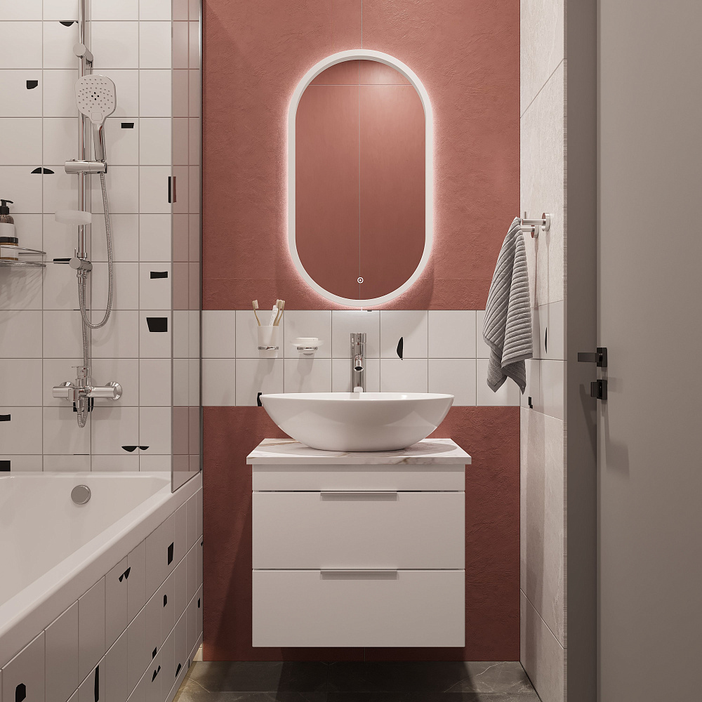Тумба с раковиной STWORKI Копенгаген 60 белая, со столешницей Stone Life 60