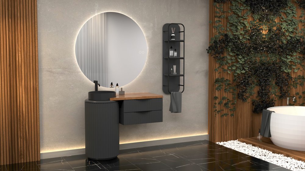 Тумба с раковиной STWORKI Лотус 107 матовый антрацит