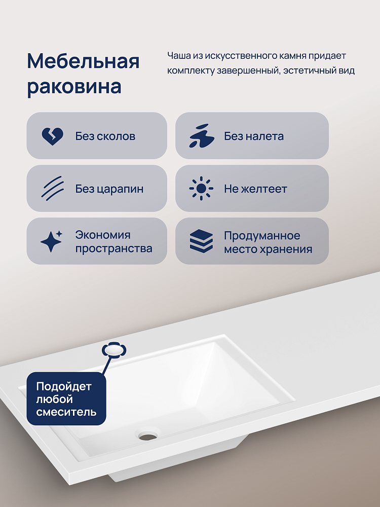 Тумба с раковиной STWORKI Мальмё 100 левая над стиральной машиной, белая