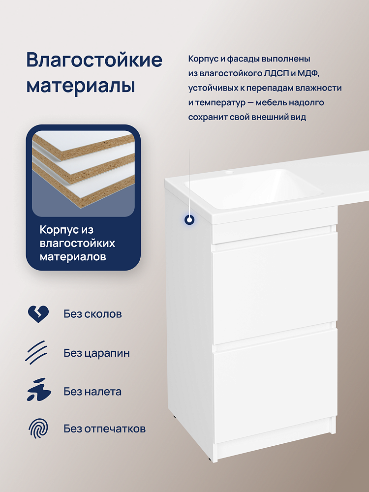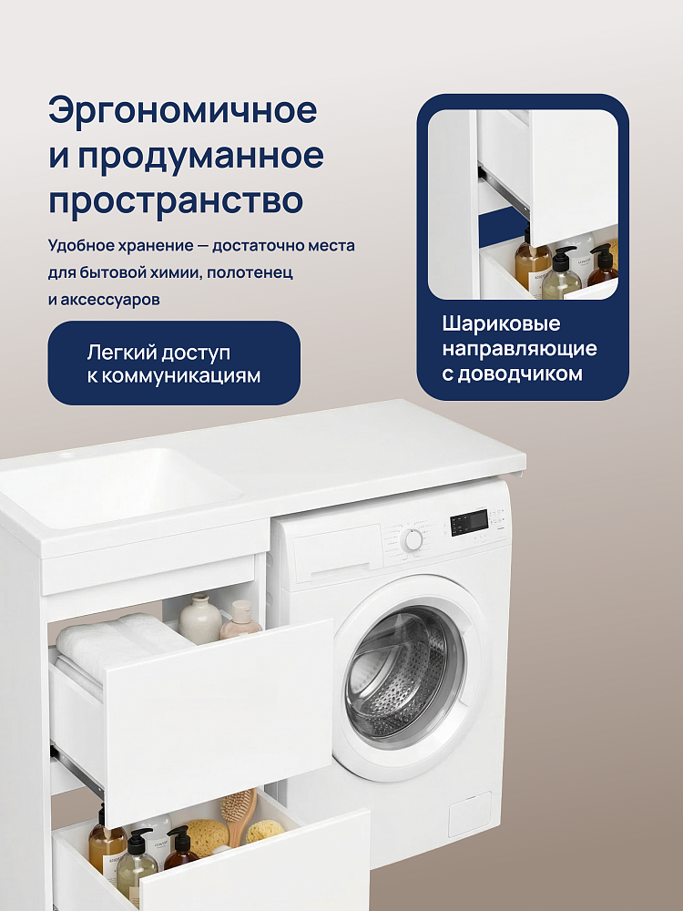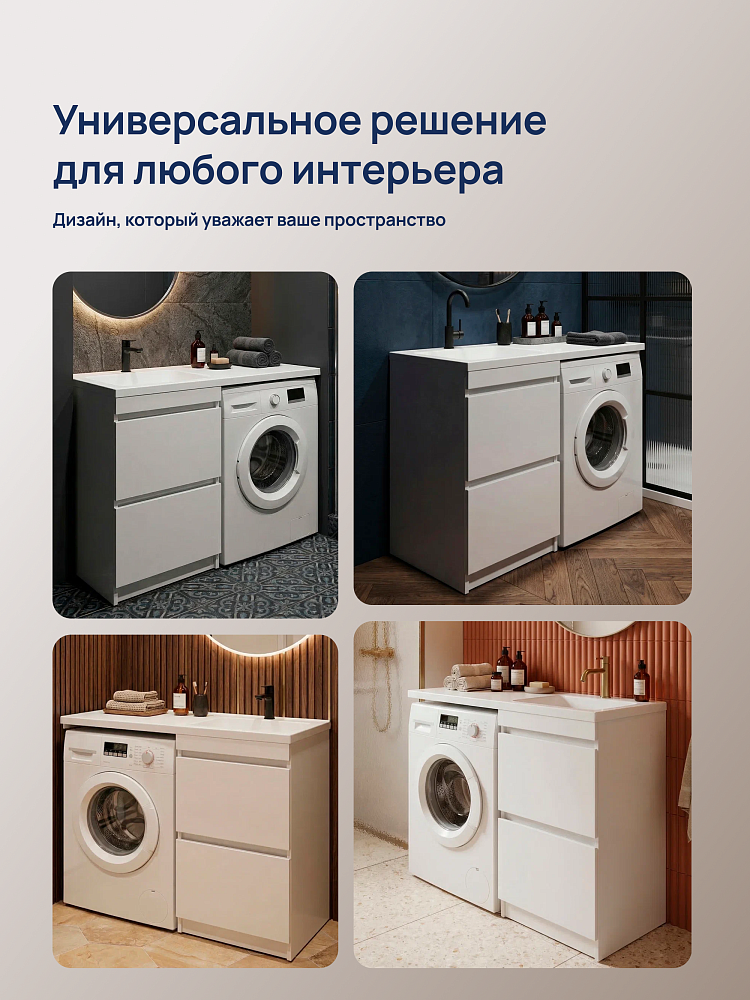 Тумба с раковиной STWORKI Мальмё 110 левая над стиральной машиной, белая