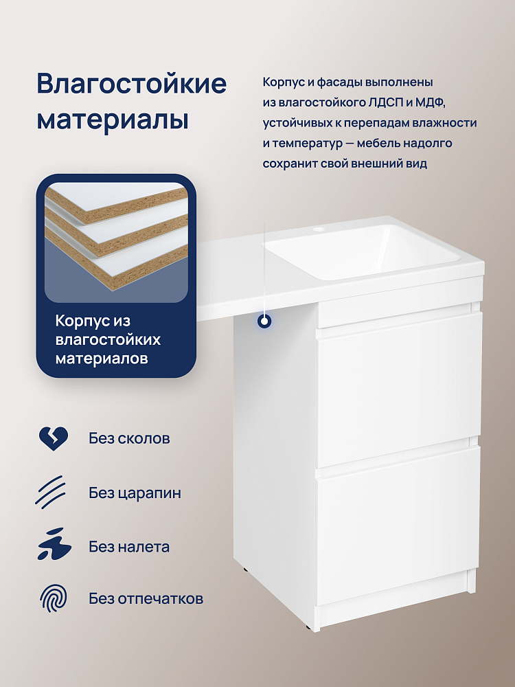 Тумба с раковиной STWORKI Мальмё 120 правая над стиральной машиной, белая