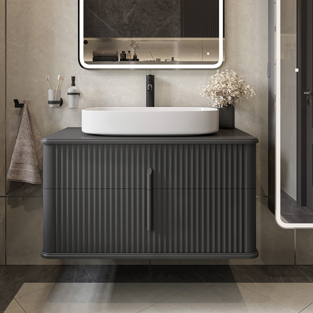 Тумба с раковиной STWORKI Молде 95 антрацит, столешница Молде 95, раковина Молде 3064-KL