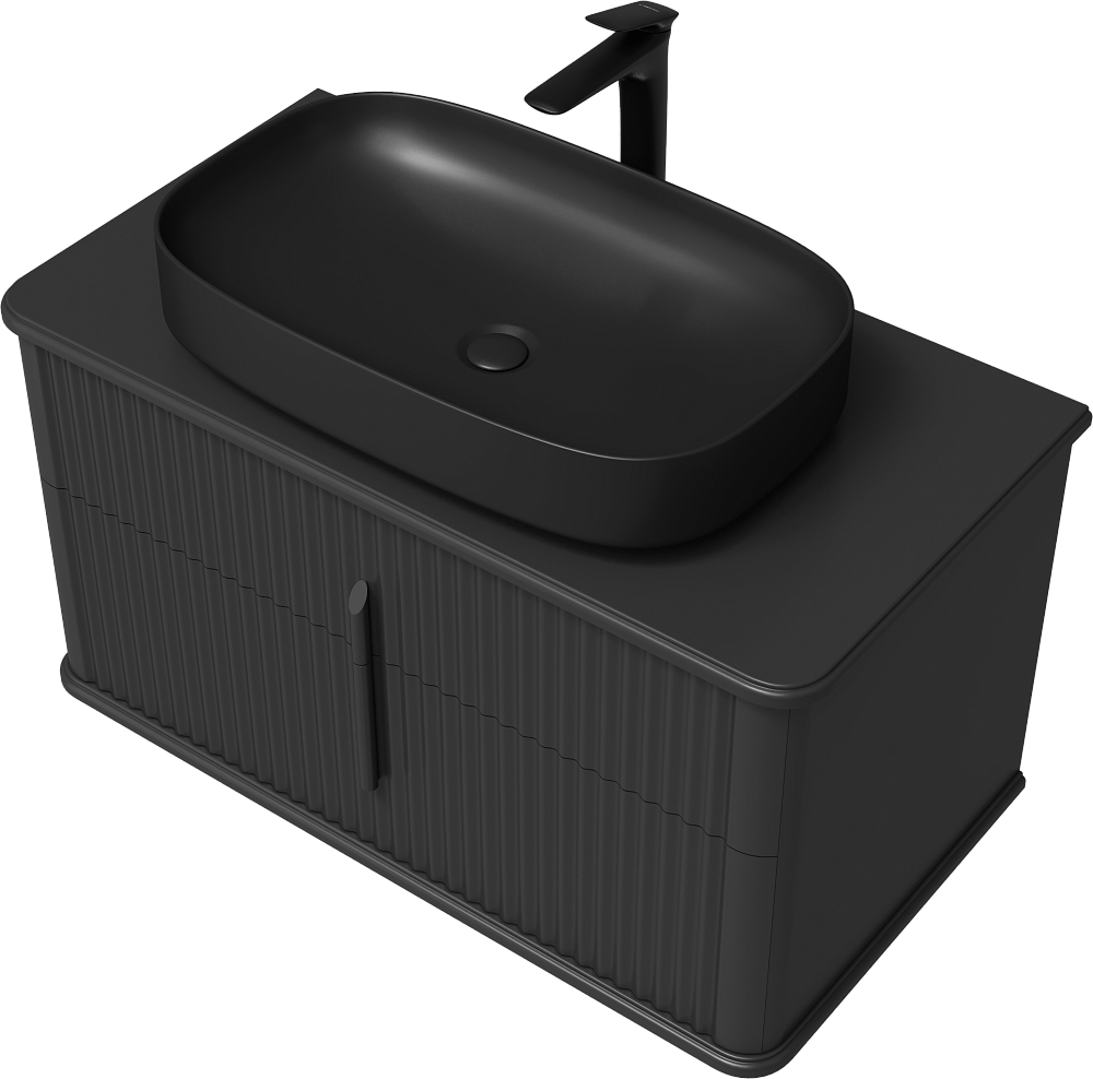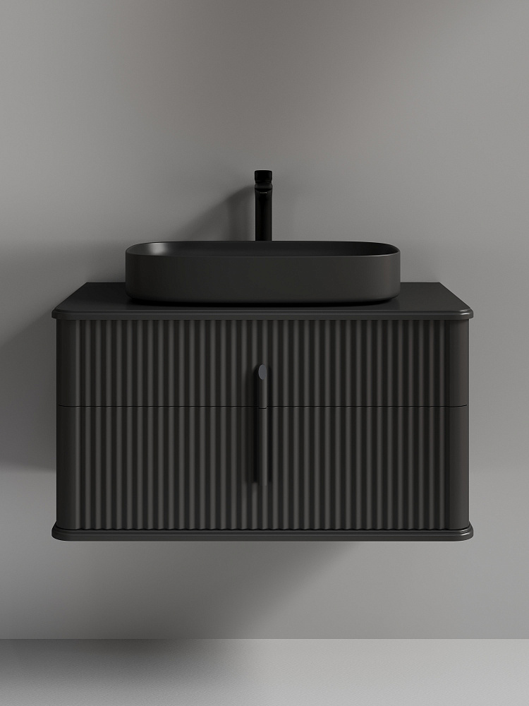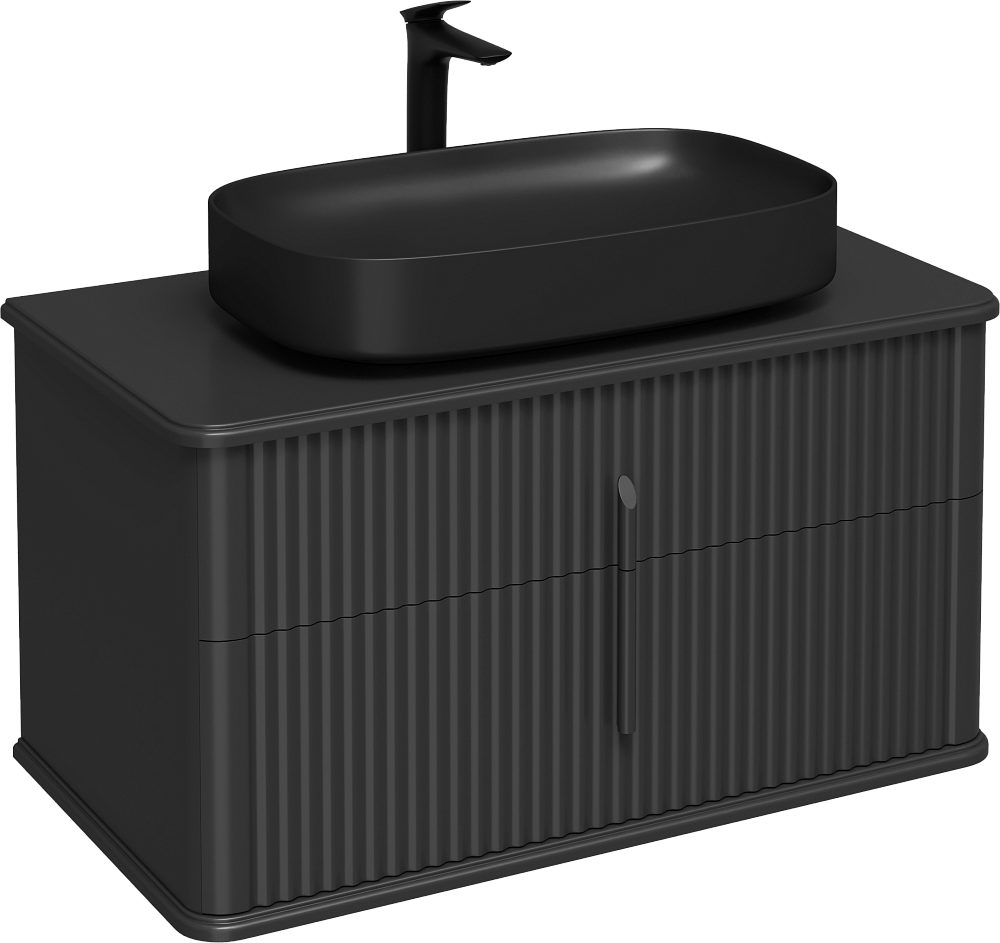 Тумба с раковиной STWORKI Молде 95 антрацит, столешница Молде 95, раковина Молде 3064-110, смеситель S23020BK