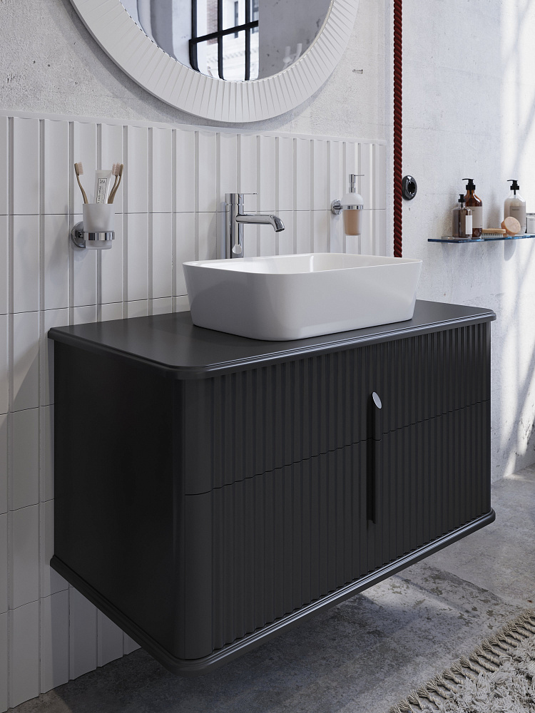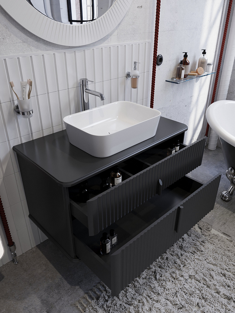 Тумба с раковиной STWORKI Молде 95 антрацит, столешница Молде 95, раковина Молде MDE500
