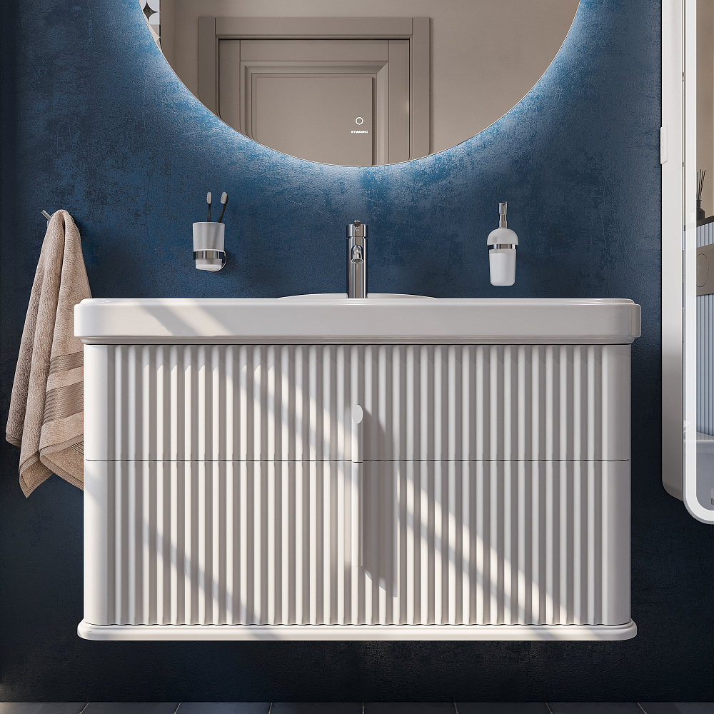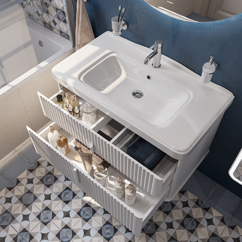 Тумба с раковиной STWORKI Молде 95 белая, раковина Молде 15095-KL