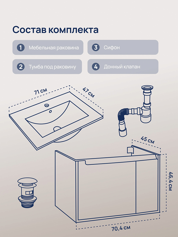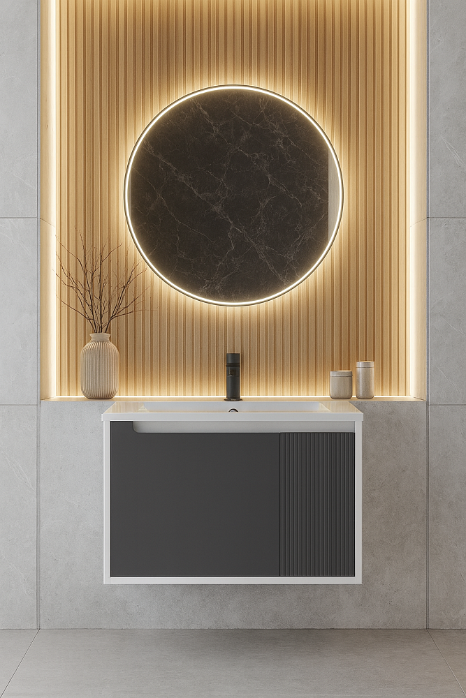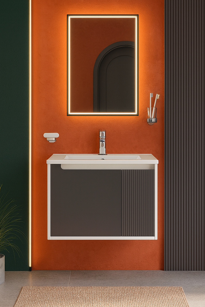 Тумба с раковиной STWORKI Мурманск 70 подвесная, антрацит