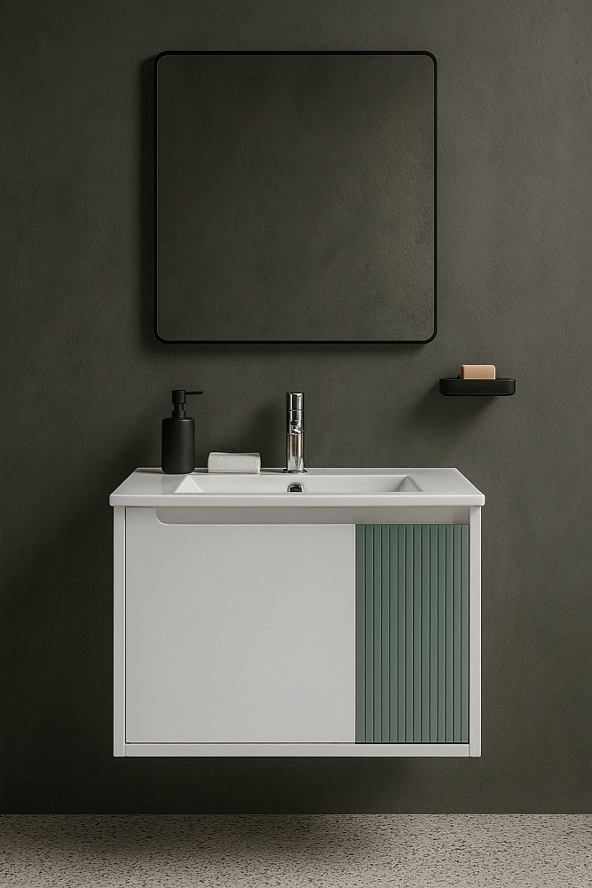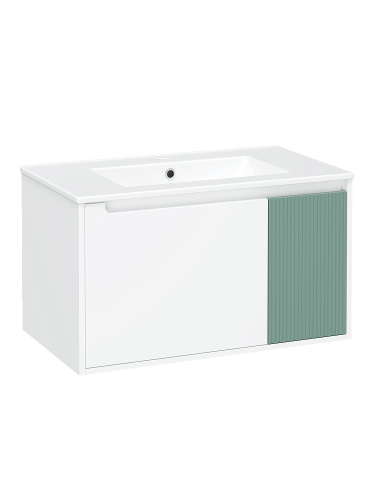Тумба с раковиной STWORKI Мурманск 80 подвесная, белая, бирюза