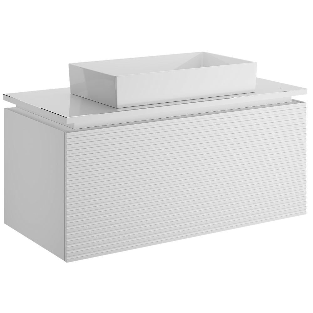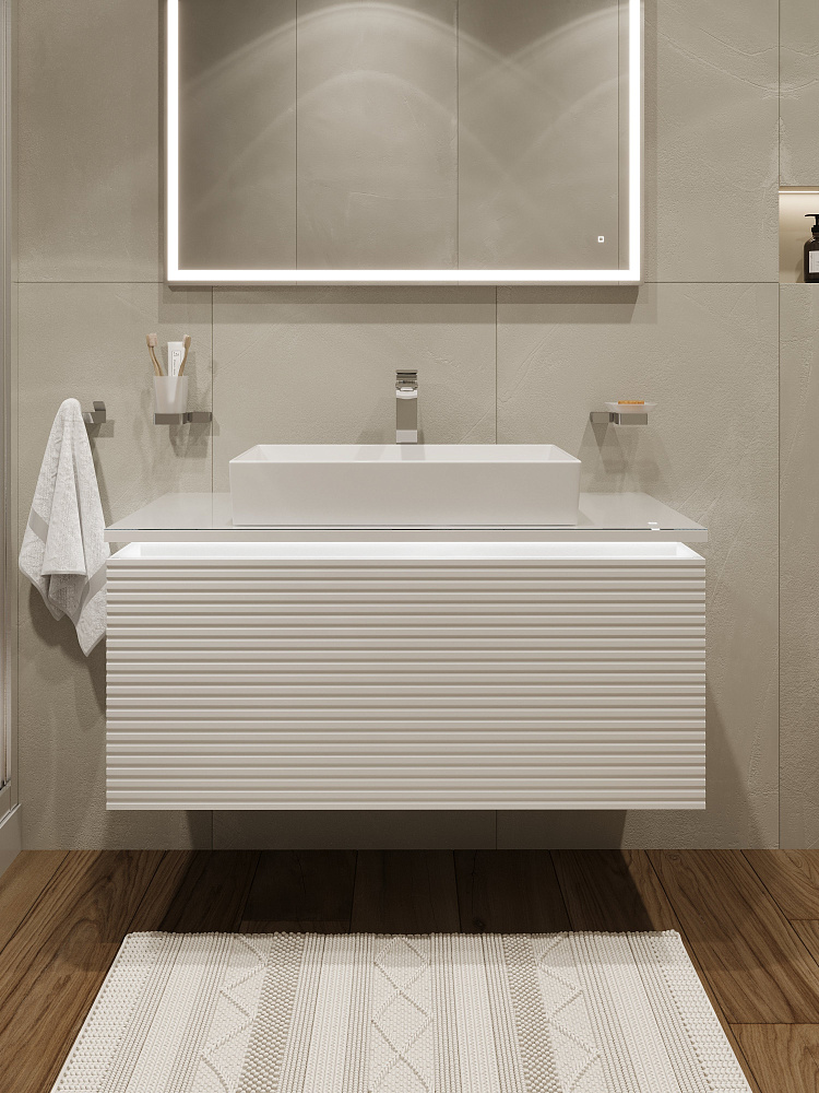 Тумба с раковиной STWORKI Рандерс 100 белая, подвесная, с подсветкой, раковина Sanita luxe Novel Slim 60