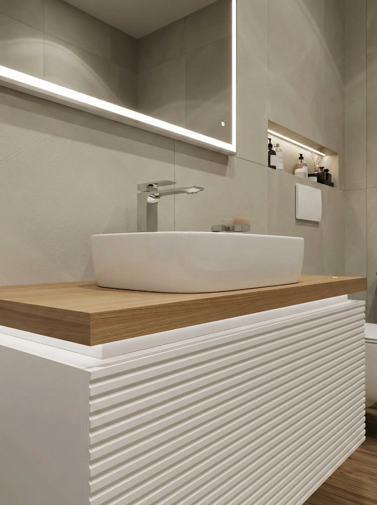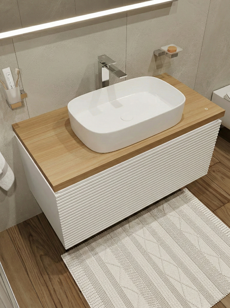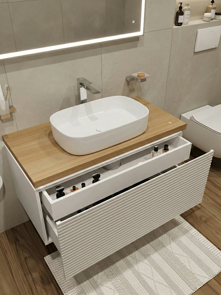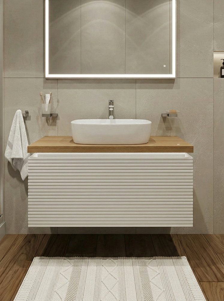 Тумба с раковиной STWORKI Рандерс 100 дерево, подвесная, с подсветкой, раковина Берген S21410WH