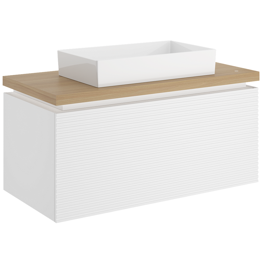 Тумба с раковиной STWORKI Рандерс 100 дерево, подвесная, с подсветкой, раковина Sanita luxe Novel Slim 60