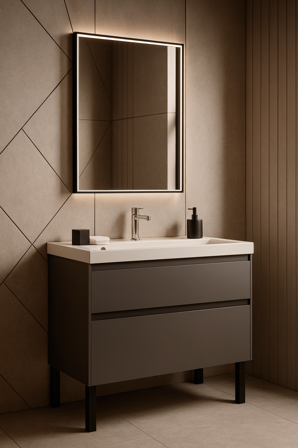 Тумба с раковиной STWORKI Родос 100 напольная, графит