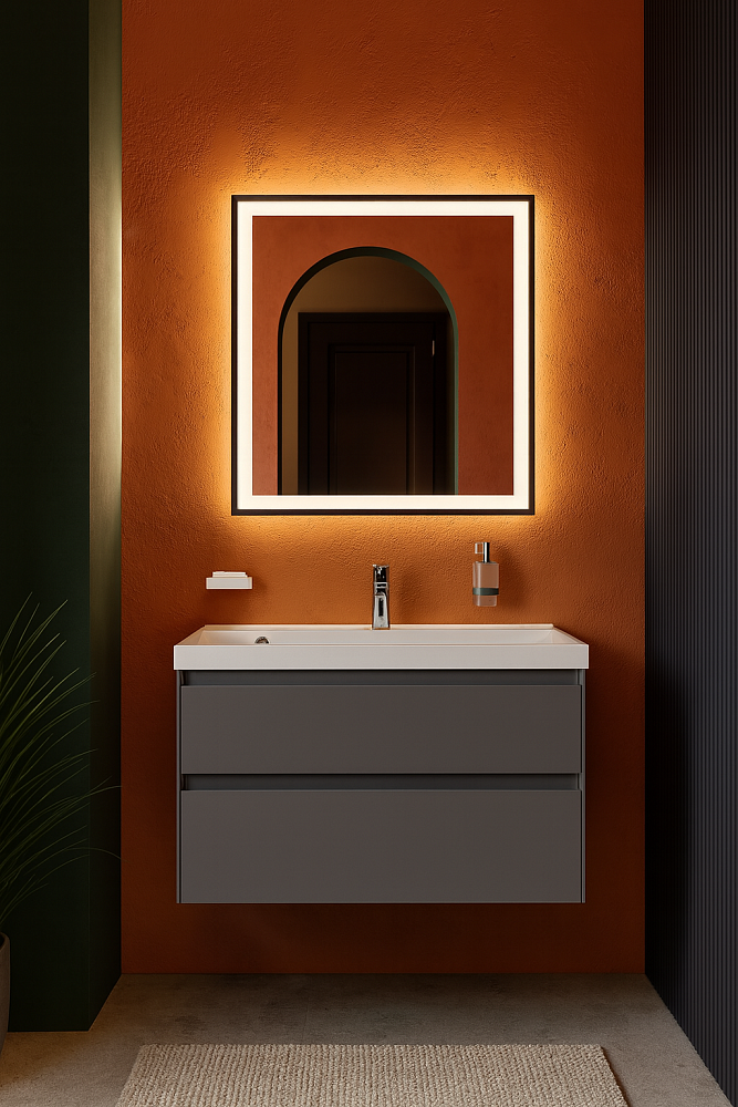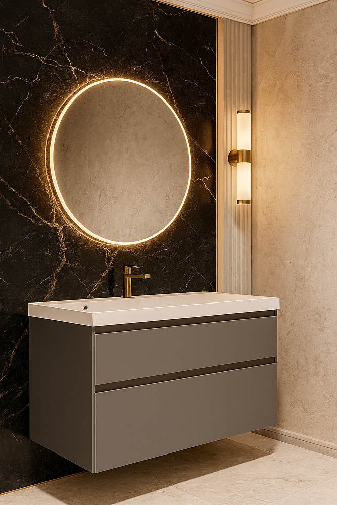 Тумба с раковиной STWORKI Родос 100 подвесная, графит