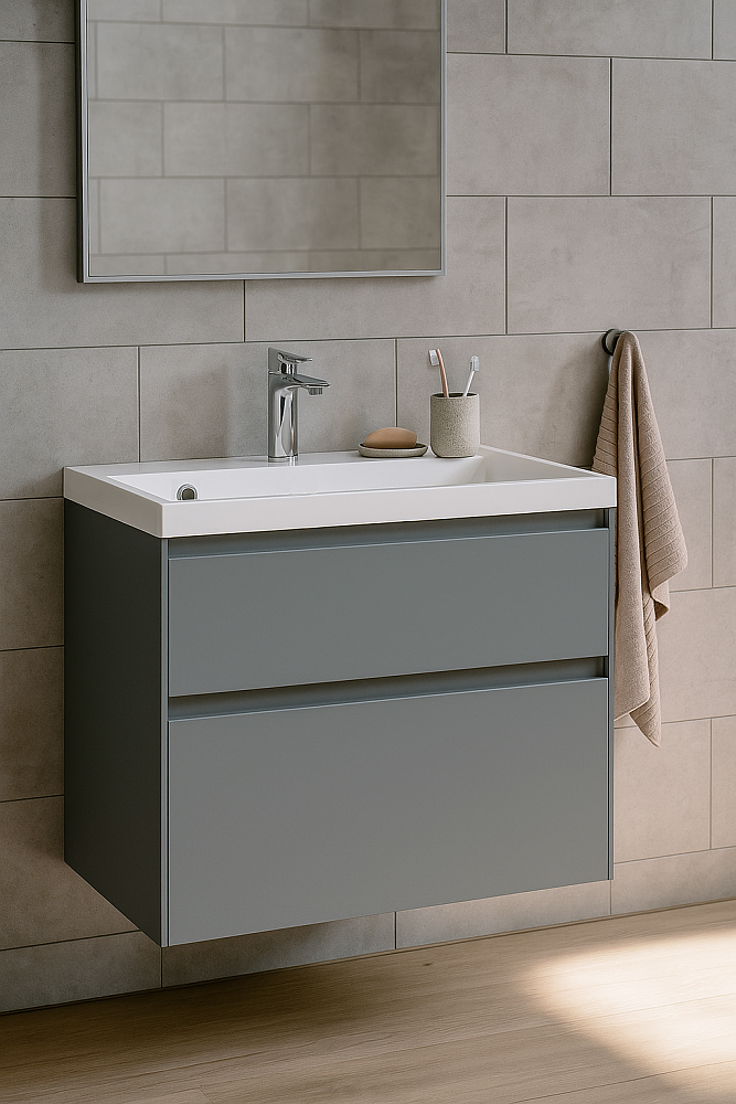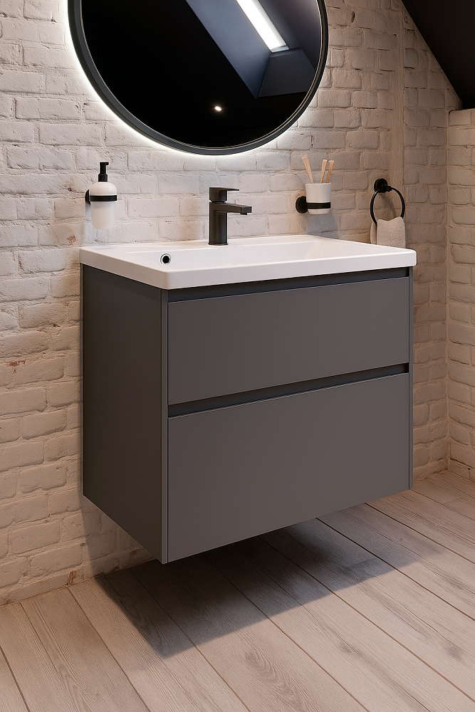 Тумба с раковиной STWORKI Родос 80 подвесная, графит