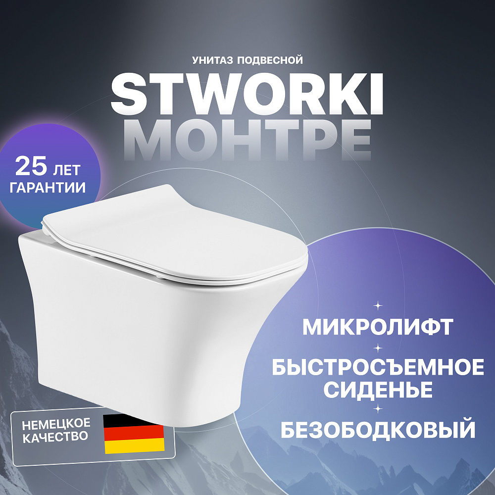 Унитаз подвесной STWORKI Монтре MO-01up безободковый, с микролифтом