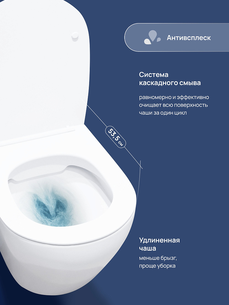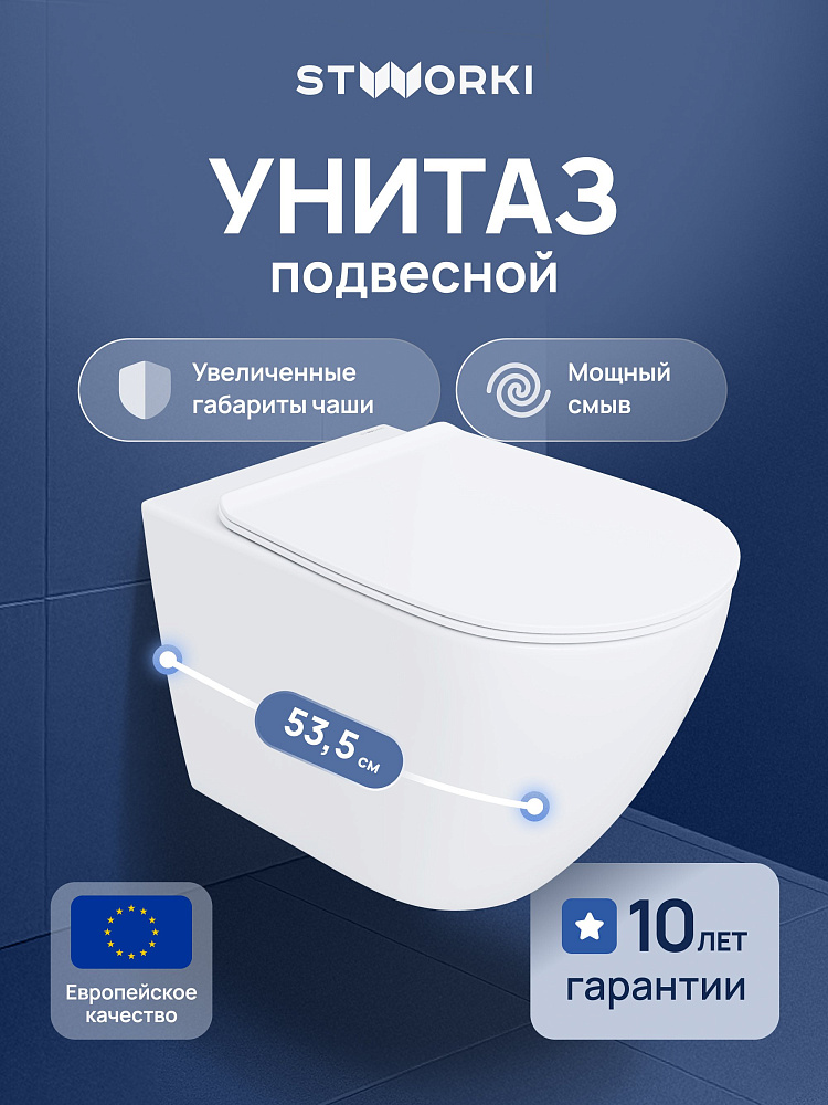 Унитаз подвесной STWORKI Готланд S13401WH безободковый, с микролифтом, глянцевый белый, антивсплеск