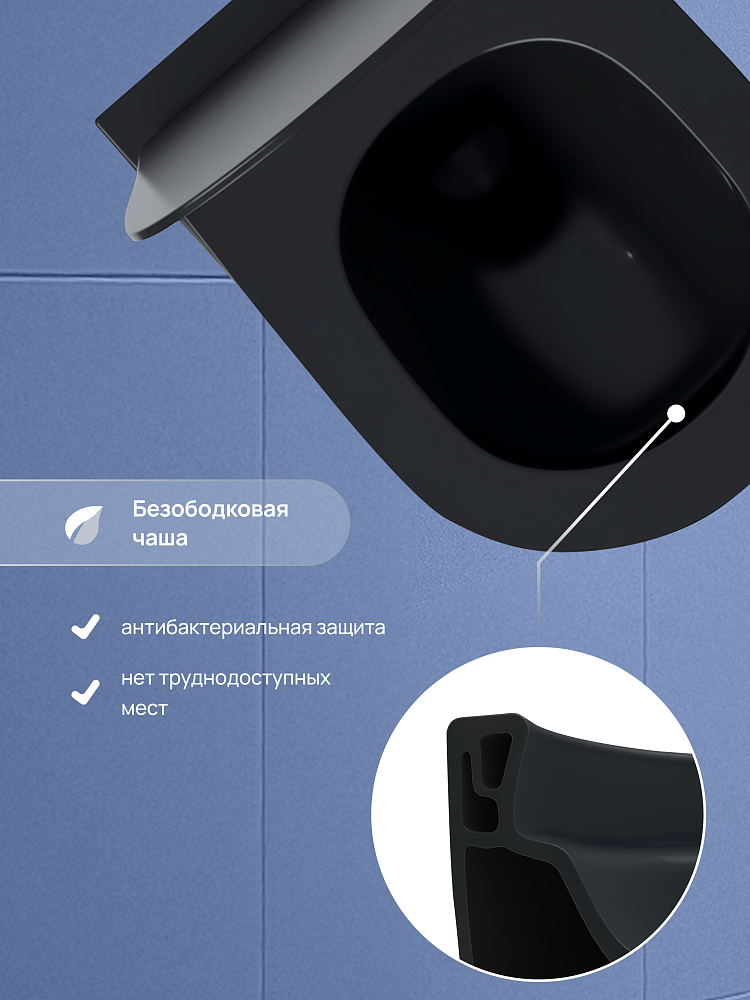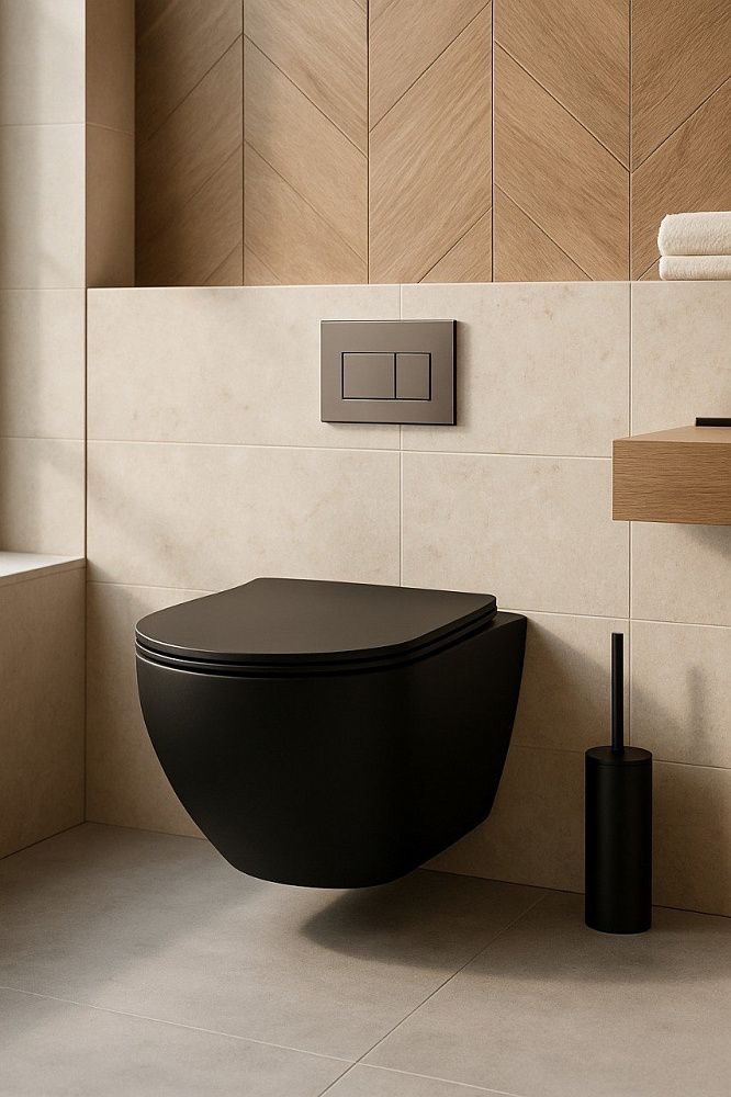 Унитаз подвесной STWORKI Кронборг S28401BK с микролифтом, безободковый, матовый черный
