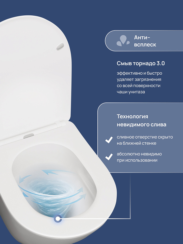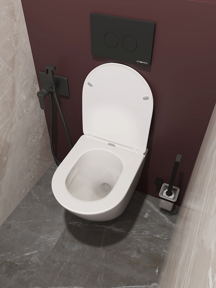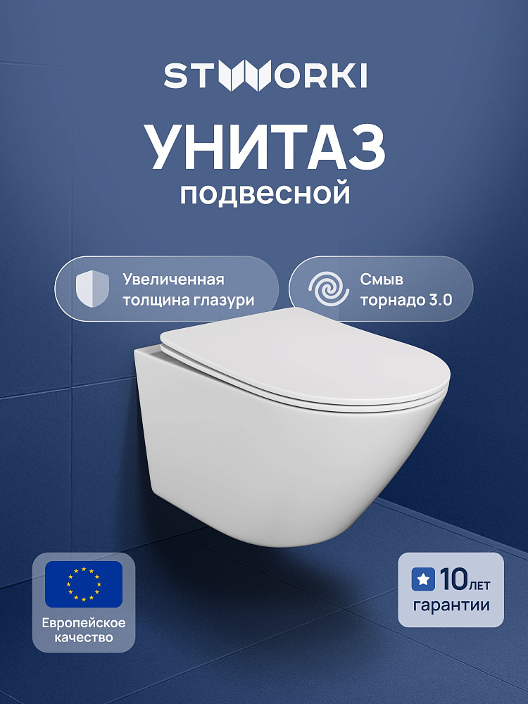 Унитаз подвесной STWORKI Левангер S07401WH безободковый, смыв Торнадо, с микролифтом, антивсплеск
