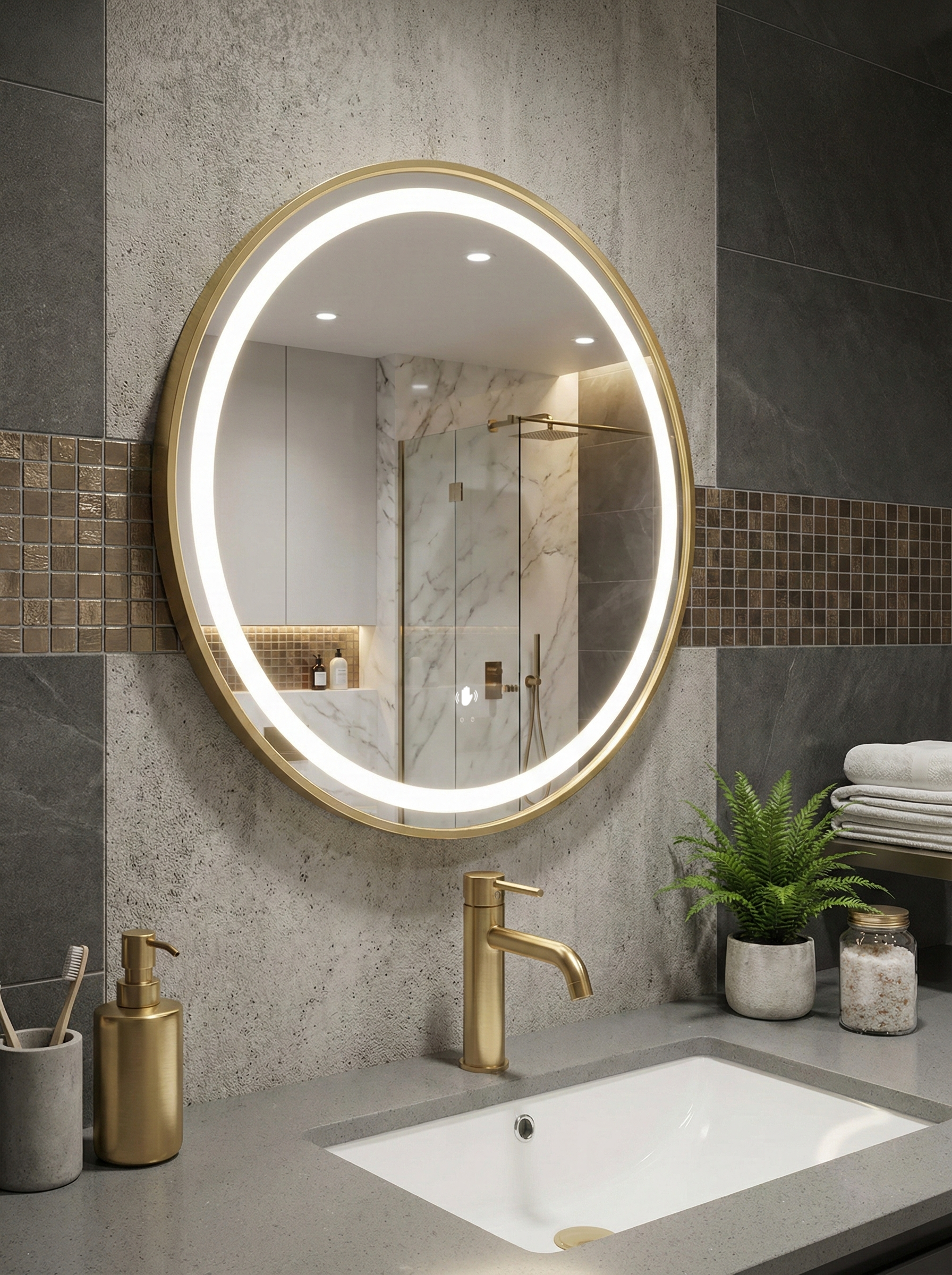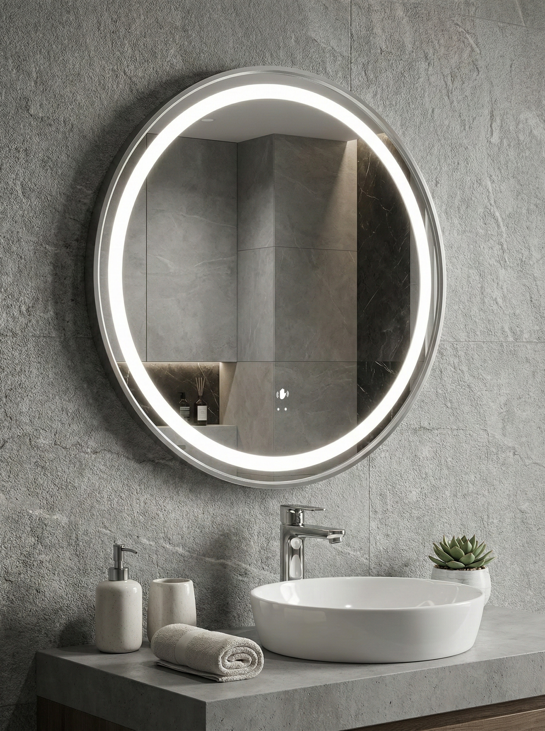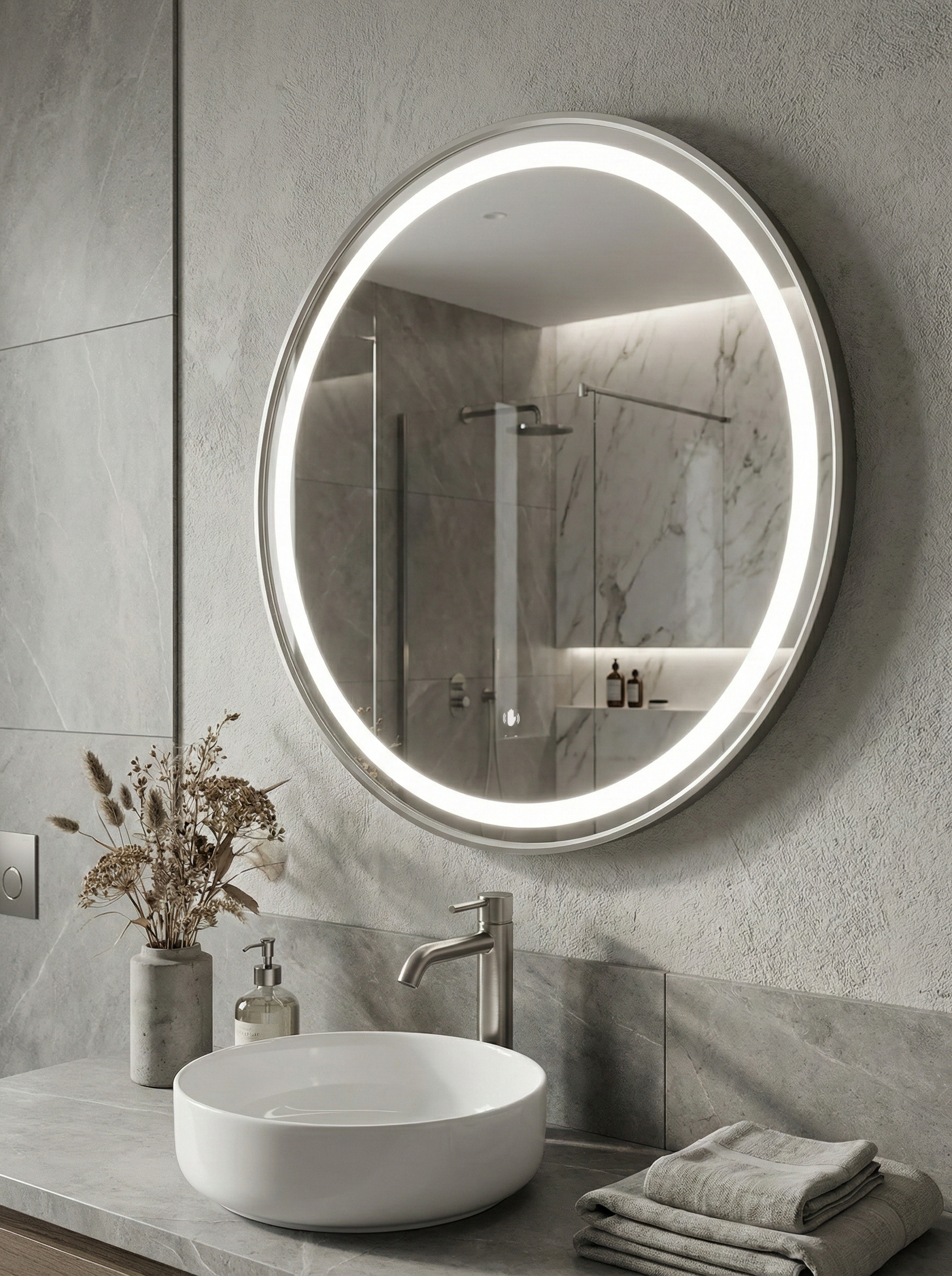 Зеркало круглое STWORKI Бурос 60, 3 цвета подсветки, с подогревом, матовое черное