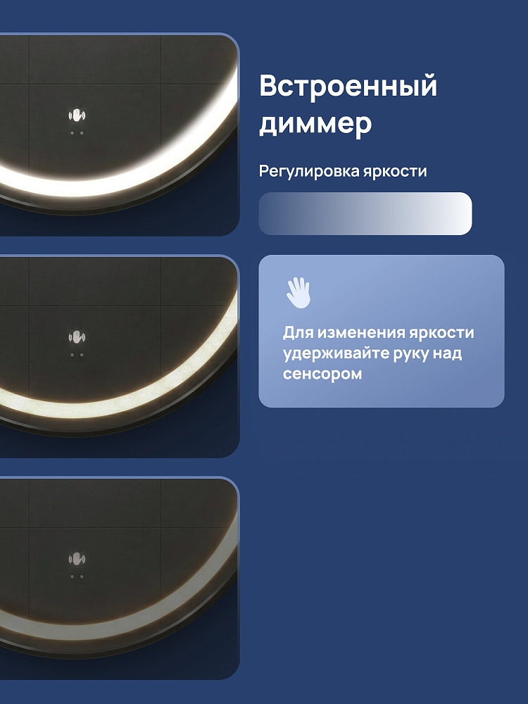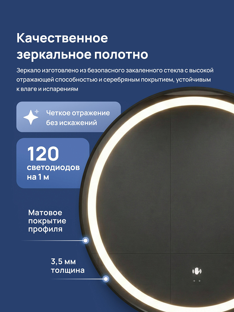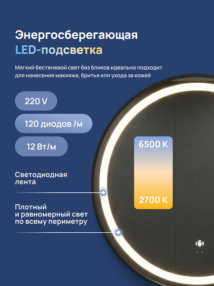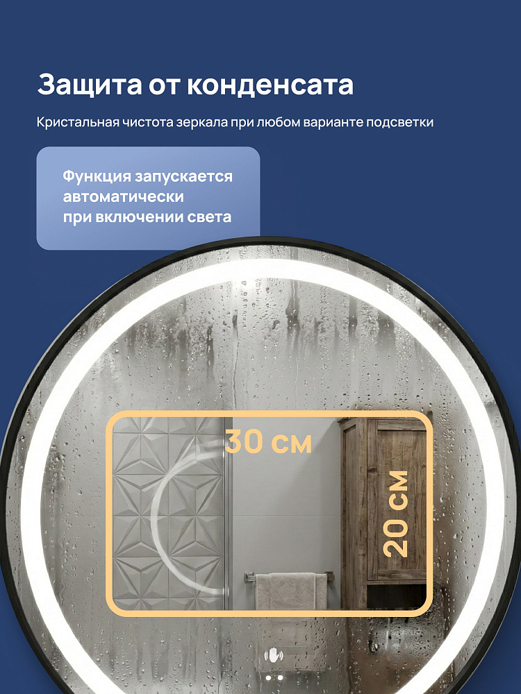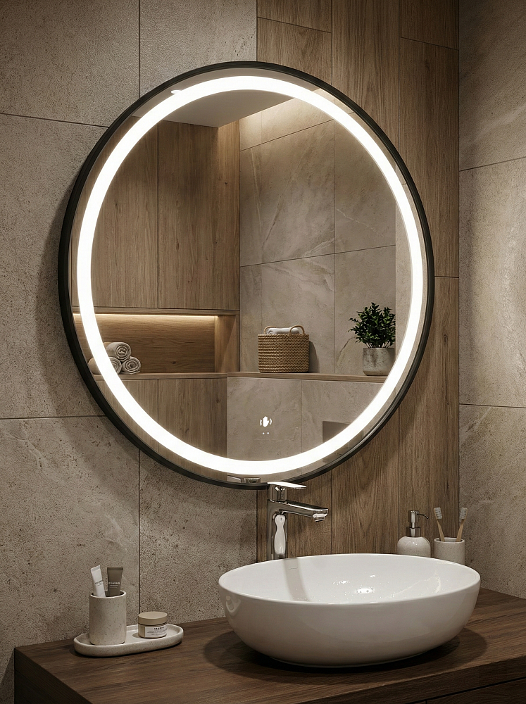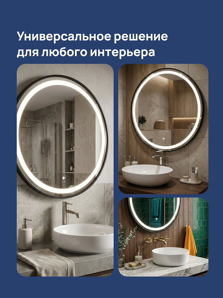Зеркало круглое STWORKI Бурос 80, 3 цвета подсветки, с подогревом, матовое черное