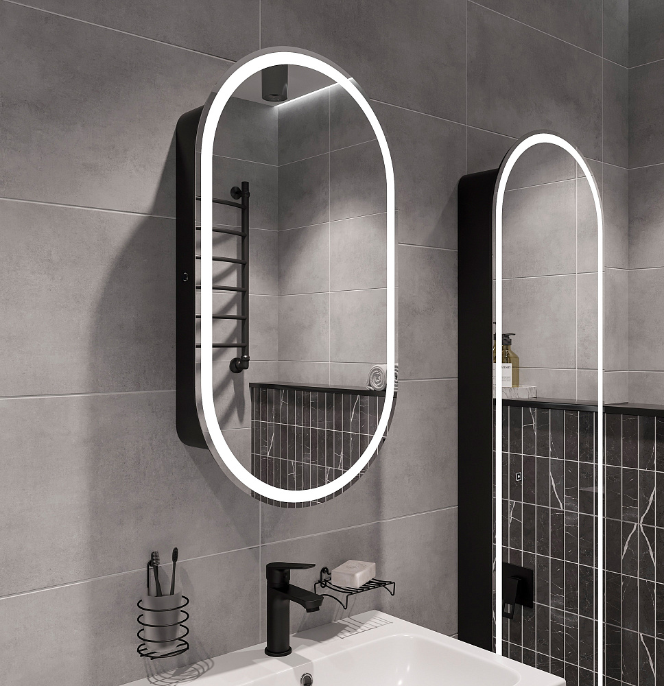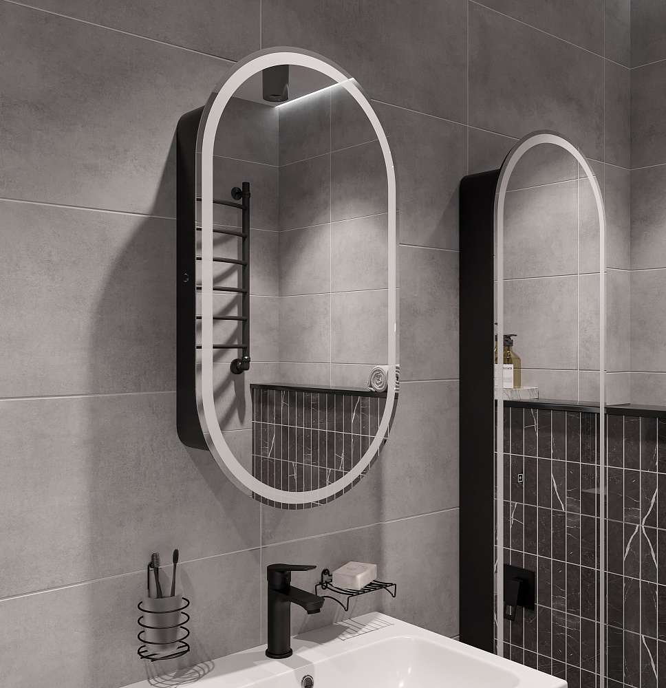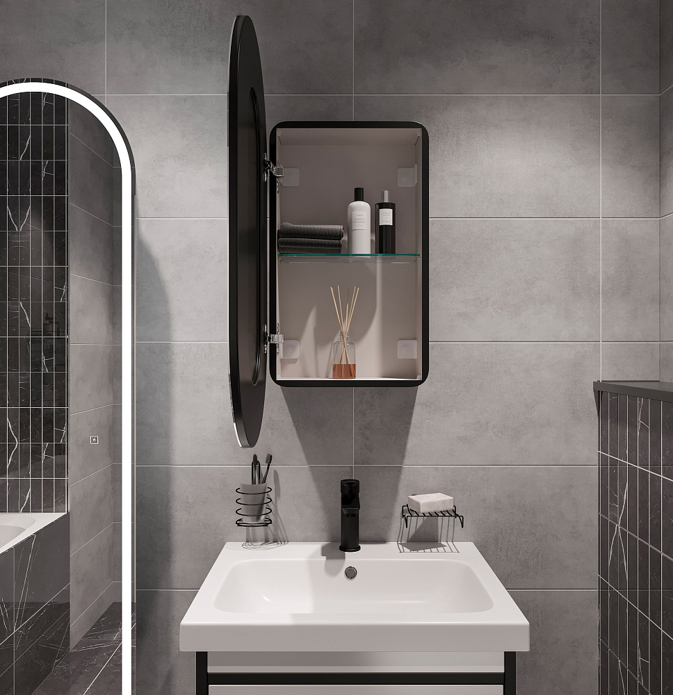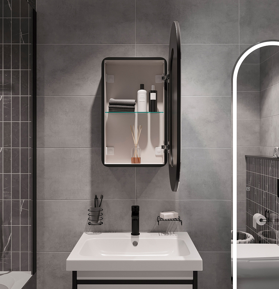 Зеркало-шкаф STWORKI Мальмё МВК073 45 с подсветкой, черное, навесное, в стиле лофт, светодиоды