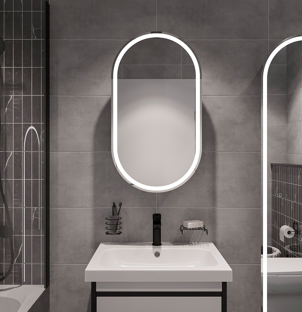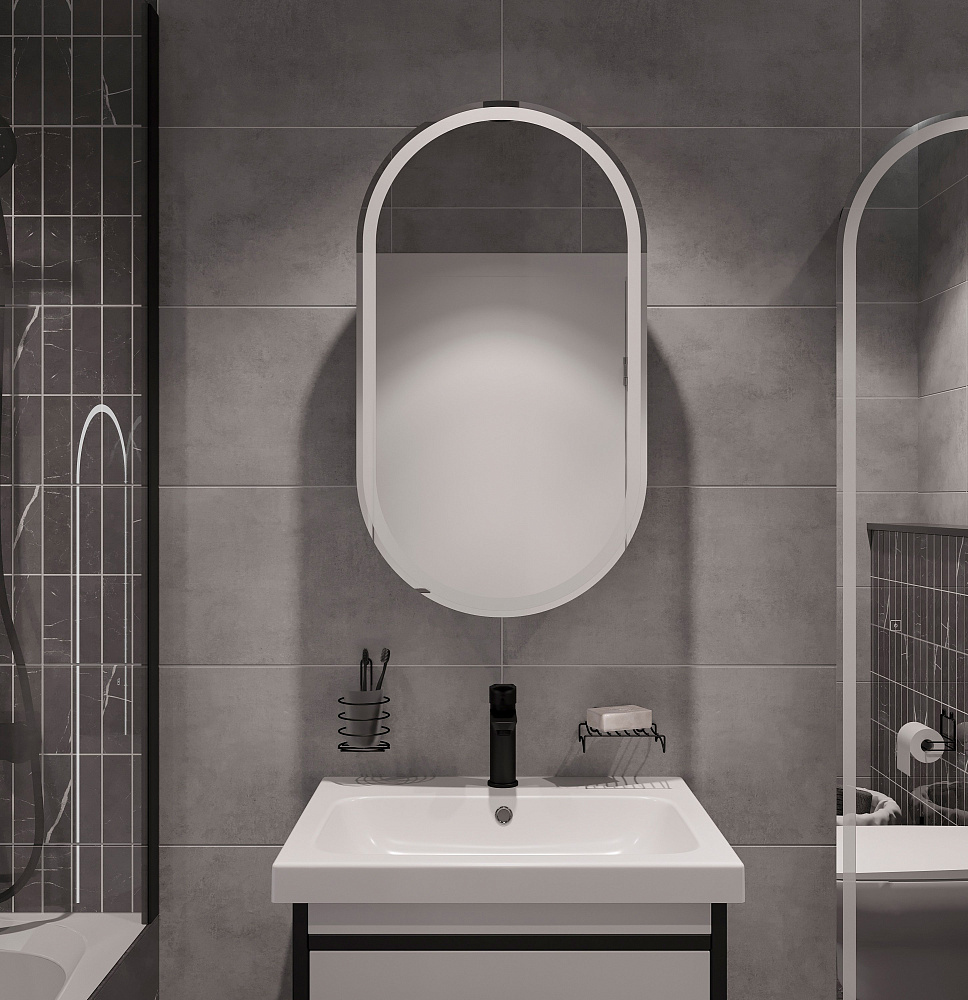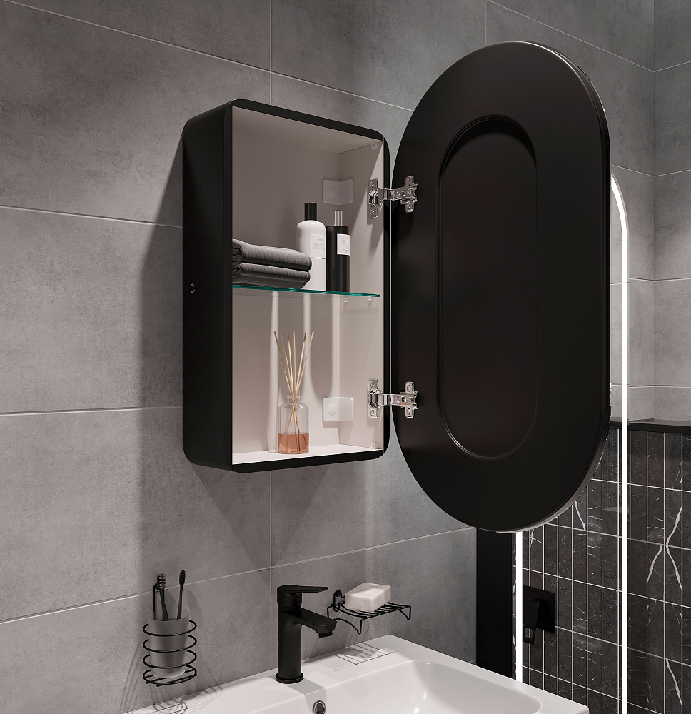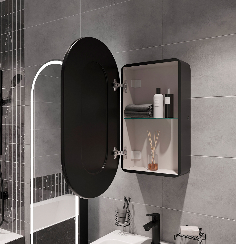 Зеркало-шкаф STWORKI Мальмё МВК073 45 с подсветкой, черное, навесное, в стиле лофт, светодиоды