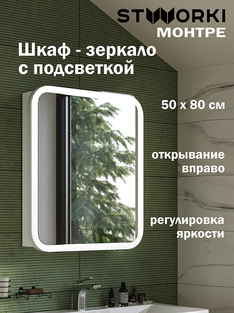 Зеркало-шкаф STWORKI Монтре 50 с подсветкой, сенсорное, правое