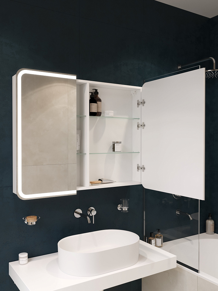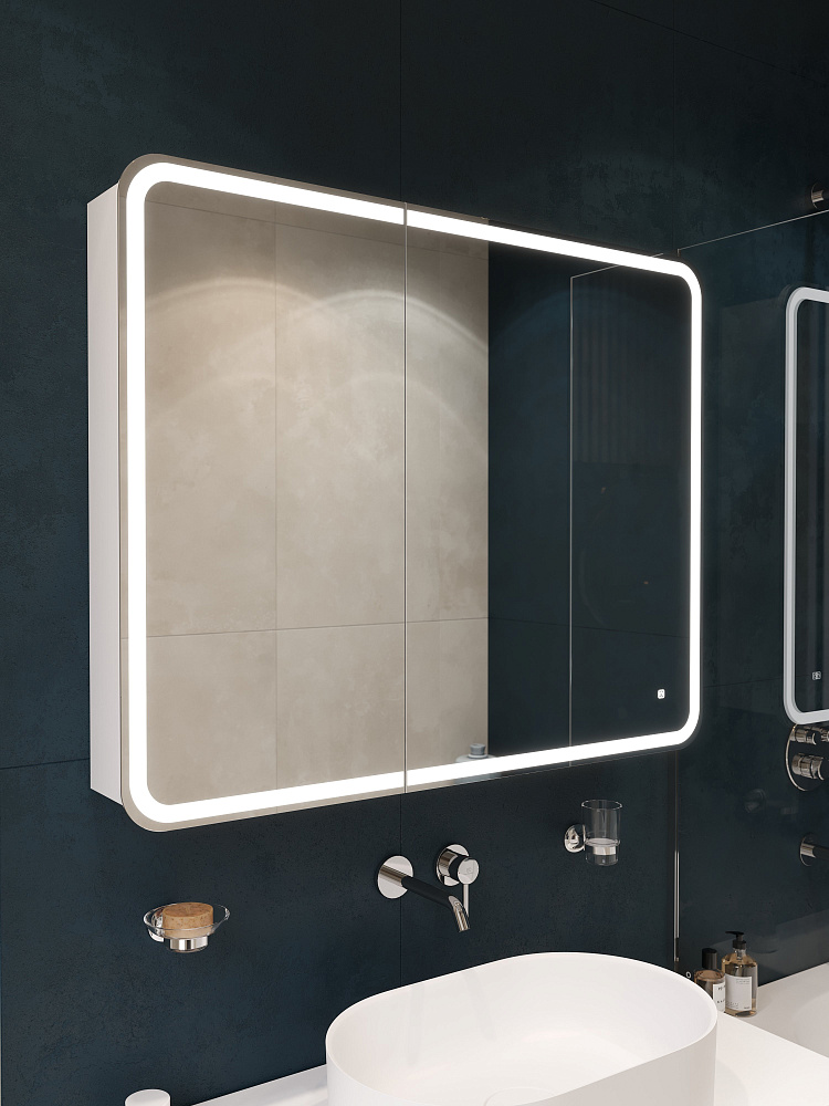 Зеркало-шкаф STWORKI Ольборг МВК080 100 с подсветкой, прямоугольный, с розеткой