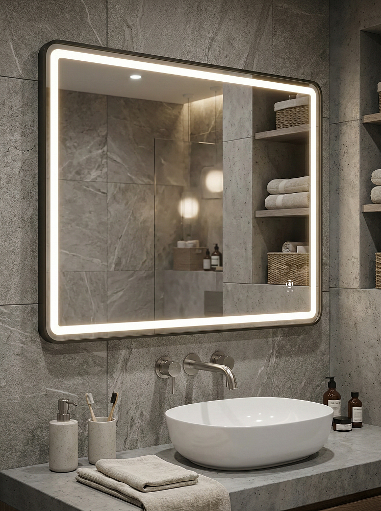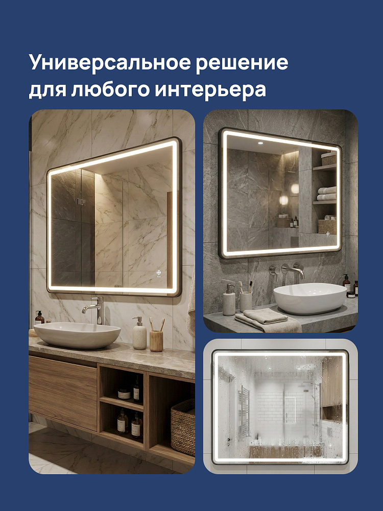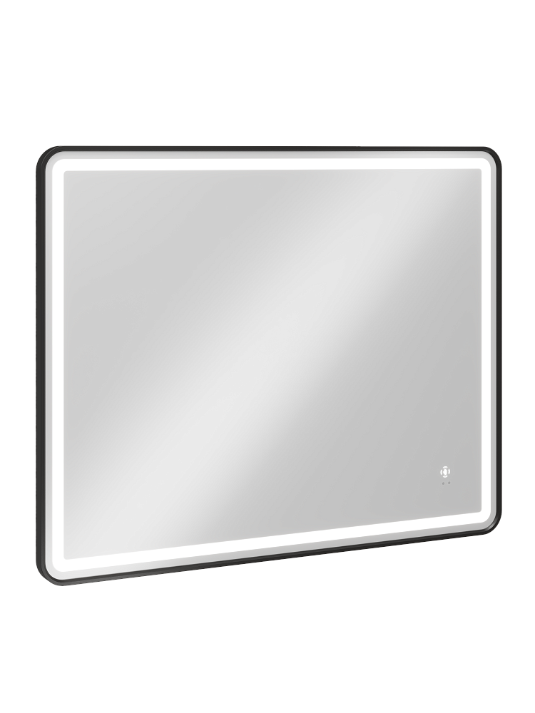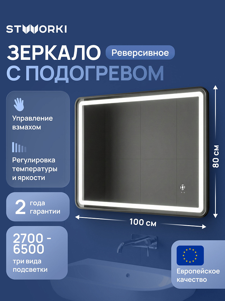 Зеркало STWORKI Аулум 100x80, 3 цвета подсветки, с подогревом, реверсивное, матовое черное